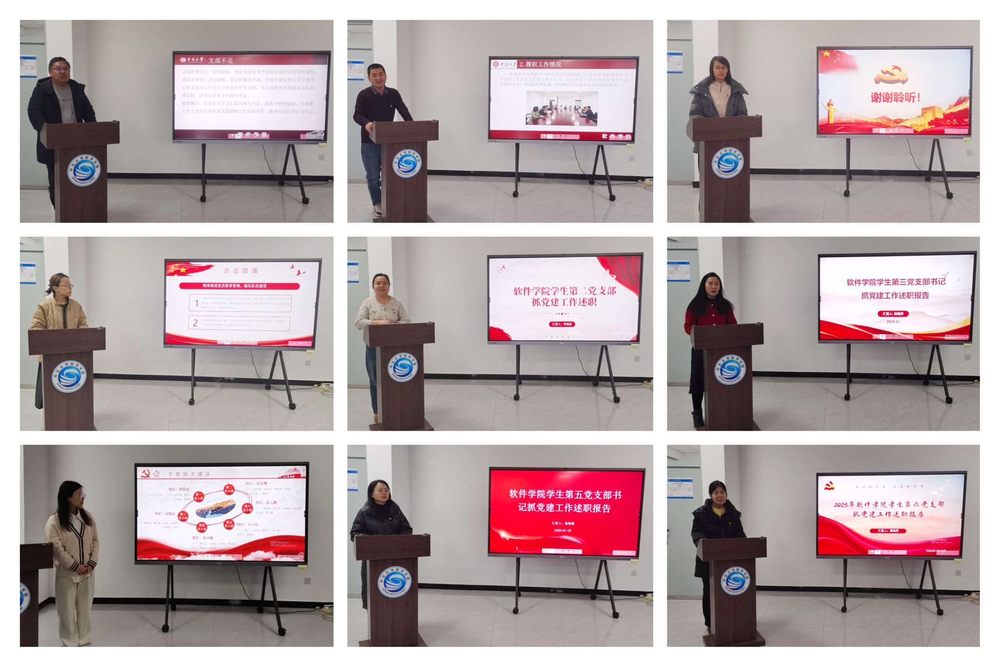 最后,常旭青同志作总结发言。她首先对各党支部2025年的工作成绩给予充分肯定,指出各位党支部书记述职时成绩讲得客观实在、问题谈得坦诚透彻、思路谋得清晰具体,整体呈现出政治站位高、责任意识强、工作举措实的良好风貌。同时,她也指出了工作中存在的共性短板:党员教育管理精细化水平有待提升,日常教育监督多以常规要求为主,部分党员先锋模范作用发挥不够充分,在攻坚克难、服务师生的一线未能充分彰显党员先进性。针对这些问题,她要求各党支部书记提高政治站位,压实整改责任,切实把问题整改落到实处。她就进一步抓好党支部建设提出明确要求:一是推动党建与业务同向发力,紧扣学校工作部署和学院学科建设、人才培养、科研创新核心任务,找准党建融入路径,以党组织优势转化为学院高质量发展动能。二是强化党建引领攻坚突破,聚焦“双一流”创建等关键目标,支部工作嵌入中心环节,由支部书记带头领办重点项目,筑牢师生联合攻坚战斗堡垒,破解发展难题。三是打造特色党建品牌,以党建规范提升行动为抓手,办好师生实事,结合软件学科特色,打造辨识度高、影响力强的党建品牌,提升基层党组织效能。