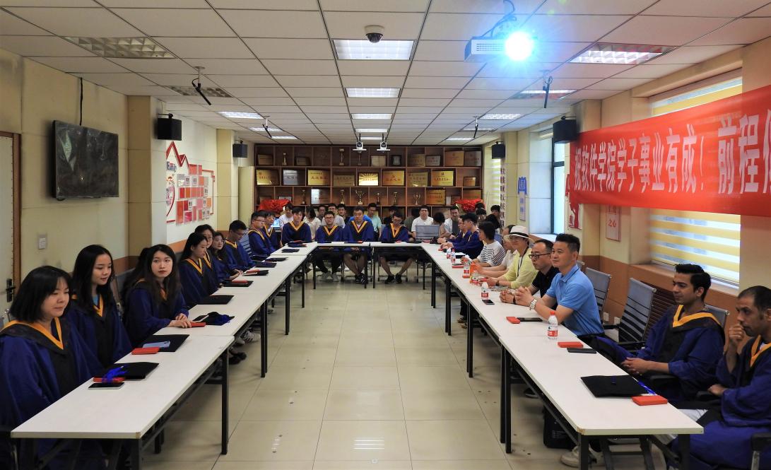 毕业研究生欢送会在学院122会议室举行。院党委书记孙豫峰、院长宋文爱、副书记高宏图、副院长李众、班主任魏跃亲参加了活动。