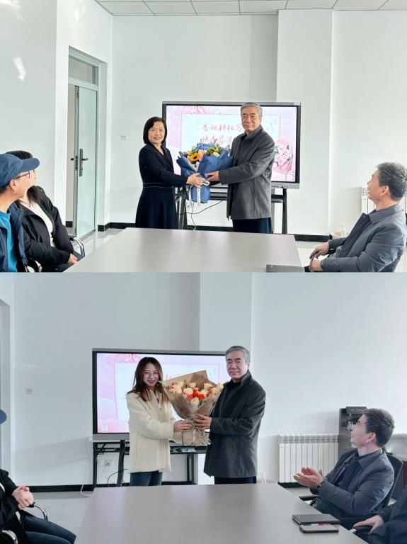 在温馨而动情的氛围中,软件开发与测试系的马巧梅老师代表全系师生,向尹四清老师献上了满载敬意与祝福的鲜花,这束鲜花不仅代表着对尹老师教育生涯的崇高敬意,也寄托了同事们对他未来生活的美好祈愿。尹老师昔日指导的研究生,如今已成为学院新兴力量的李志媛老师,也手捧鲜花向恩师表达了诚挚的祝福。