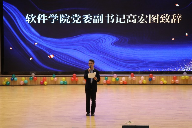 党委副书记高宏图发表了热情洋溢的迎新致辞,对新同学的到来表示热烈欢迎,鼓励各位新同学在未来学习、生活中能够秉持“明德善思,笃行于新”院训的内涵精神,追求卓越实现自我价值,并希望新同学们能够在色情视频